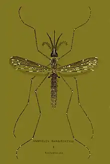 Anopheles barbirostris is a species complex of mosquito belonging to the genus Anopheles. Larvae found in clean, lotic bodies of water. Females are zoophilic, mainly feed blood on cattle and humans. It is also an important vector for Plasmodium falciparum in Sri Lanka and Timor, for both Plasmodium vivax and P. falciparum in Bangladesh.[1]