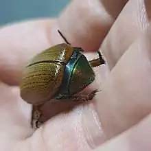 Anoplognathus brunnipennis, commonly known as the brown- or golden-brown Christmas beetle, is a beetle of the family Scarabaeidae native to eastern Australia,[1] being common in coastal Queensland, New South Wales and Victoria, the Great Dividing Range and the Murray-Darling river basin.[2]