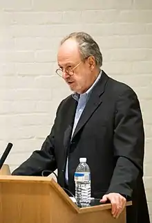 In 2012 a special issue of New German Critique was dedicated to Rabinbach's work and legacy. In their introduction to the issue, David Bathrick and Andreas Huyssen note Rabinbach's "compelling... staging of texts and debates written by or involving public intellectuals that have arisen in moments of crisis, catastrophe, or apocalypse," including his seminal writings on Theodor W. Adorno, Hannah Arendt, Walter Benjamin, Ernst Bloch, Martin Heidegger, Max Horkheimer, Karl Jaspers, and Raphael Lemkin.[9] In his 1997 book In the Shadow of Catastrophe: German Intellectuals between Apocalypse and Enlightenment, Rabinbach characterizes these authors' writings on Europe's cataclysmic twentieth century as "powerful philosophical attempts to translate that experience into a philosophical language whose legacy still exerts a powerful intellectual and sometimes even political influence today."[10] For his notable 1976 article "The Aesthetics of Production in the Third Reich," Rabinbach interviewed the notorious former Nazi architect and armaments minister Albert Speer.[11]