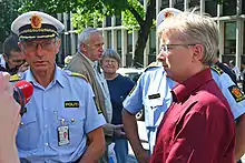 2. Wiedswang Zondag, Martin Herman; Sætre, Jonas (22 June 2012). "Hans Sverre Sjøvold blir ny politimester i Oslo" [Hans Sverre Sjøvold becomes new police chief in Oslo] (in Norwegian). Retrieved 30 July 2013.