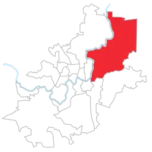Antakalnis (literally Lithuanian: 'the place on the hills'; Polish: Antokol[2]) is an eldership in Vilnius, Lithuania. Antakalnis is one of the oldest, and largest historical suburbs of Vilnius. It is in the Eastern section of Vilnius, along the left bank of the Neris, with the river running along the whole Western side of the district.[3] Antakalnis Eldership is the second-largest in Vilnius, with an area of 77.14 km2 (29.78 sq mi).