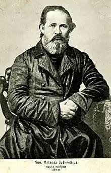 Antanas Juška (Polish: Antoni Juszkiewicz; 16 June 1819 – 1 November 1880) was a Lithuanian Roman Catholic priest known for his lifelong study of Lithuanian folk traditions. For about three decades, he observed the Lithuanian people, their traditions, and recorded their songs and vocabulary. Juška recorded about 7,000 Lithuanian folk songs, including about 2,000 songs with melodies, and wrote a 70,000-word Lithuanian–Polish dictionary. These works provide a wealth of information of the 19th-century Lithuanian life. His works were partially published with the help of his elder brother Jonas Juška.