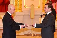 - ↑ Послы иностранных государств, вручившие верительные грамоты Президенту России (in Russian). Presidential Press and Information Office. 27 February 2009. Archived from the original on 4 August 2012. Retrieved 2009-03-03.