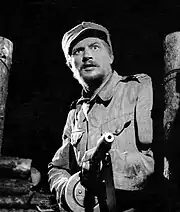 Antero "Antti" Rokka is a fictional character in Väinö Linna's 1954 war novel The Unknown Soldier. Antero Rokka is a well-known figure in the story, and he has taken on an almost archetypal role in Finnish culture. According to Väinö Linna's own testimony, Rokka's character is based on Linna's comrade-in-arms, Viljam Pylkäs.[1] It is also said that Linna borrowed the character's name from a real-life Ingrian soldier, Antti Rokka, whom Linna would have gotten to know after the war, and that the Rokka in the book would also have the character traits of the real Rokka.[2]