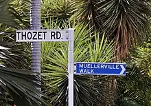 Muellerville Walk was developed in 2014 to guide visitors around the western boundary of what was once Thozet's vast property, with the starting point being at Thozet's grave in Norris Park.[22] Muellerville Walk was upgraded in 2017 with interpretive signage and a fully connected pathway.[22]