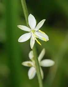 Anthericum liliago, the St Bernard's lily, is a species of flowering plant in the family Asparagaceae. It is native to mainland Europe (not the British Isles) and Turkey, growing in dry pastures, stony places and open woods and flowering in early summer. In Sweden, the northernmost stable populations grows along the rocky shores of Lake Sommen (58° N), albeit on occasions it has been found as far north as Uppland (60° N).[2][3]