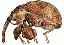 Anthonomus eugenii is known as the pepper weevil. This beetle feeds and lays eggs on plants in the genus Capsicum and a few species in the genus Solanum.[1] A. eugenii is native to Mexico,[2] however, it is an important pest of Capsicum in Florida, Puerto Rico, and Central America.[3]