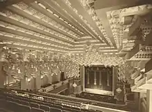 In 1919, brother Marino Lucas' Majestic Theatre became the busiest and most profitable cinema in Tasmania.[6] This and the rising global interest in silent films may have influenced Lekatsas, now known as Anthony Lucas, to join forces with the American Phillips brothers (who had been behind the development of Luna Park in seaside St Kilda), to demolish the Town Hall Cafe and build Melbourne's first large scale elaborate picture palace, known as the Capitol Theater. He again employed the Griffins to design both the theatre and the ten storey office building placed above, and when the theatre opened on 7 November 1924, the unique crystalline interior and coloured lighting was considered a marvel. The Capitol has subsequently achieved heritage status as one of the most avant-garde theatres in the world, and is now registered with the Australian Heritage Commission, the National Trust and Heritage Victoria.[7]