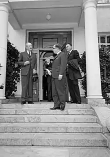Anthony Lambert standing to the right when the Prime Minister Harold Macmillan (left) visited Finland. In the middle, the Finnish Minister Ahti Karjalainen.