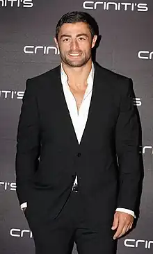 Formerly a gymnast,[27] Minichiello was a finalist in the Sexiest Man in League contest for 2006,[28] where he finished sixth with 7% of the vote. He was crowned the NRL's Most Wanted on The Footy Show in 2003, and with his brother Mark (who previously played for Hull FC, in the Super League), posed for Cosmopolitan magazine's Lonsdale Boys with Balls '06 feature.