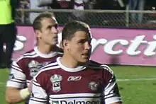 After being involved in an alleged incident where Watmough abused a club sponsors 21-year-old daughter and then punched the sponsor at the club's 2009 season launch,[8] Watmough started the following season in good form, winning the man-of-the-match award for his two-try performance in Manly's victory in the 2009 World Club Challenge. He was selected for Australia in the one-off test match against New Zealand on 8 May 2009.[9]