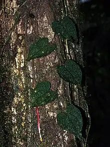 Anthurium clidemioides is a species of plant in the genus Anthurium native to Costa Rica, Panama, and Colombia.[1] One of the more distinctive Anthuriums, it is a vining climber with almost stalkless, bullate leaves that can range from light to very dark green.[2][3] Along with Anthurium flexile it is one of only two species in the genus that produces roots between nodes.[4][3]