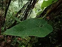 Anthurium corrugatum is a species of plant in the genus Anthurium native to Central and South America from Panama to Ecuador.[1] This species is noted for its cordate leaves with a network of fine veins that gives it a bullate appearance. A terrestrial grower, it is adapted to cool, humid climates.[2] It is a member of the section Polyneurium along with Anthurium argyrostachyum and others.