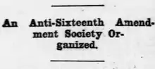 The Anti-Sixteenth Amendment Society was an American anti-suffrage group in the late nineteenth century. It was formed in 1869. Madeleine Vinton Dahlgren was the leader and other prominent women were involved. Members of the group opposed giving women the right to vote and petitioned the United States Congress against women's suffrage.