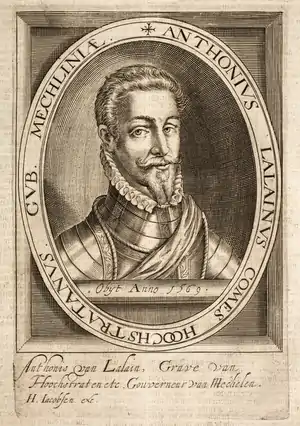 Antoine II of Lalaing (1533–1568), 3rd count of Hoogstraten, was a patron and nobleman of the Southern Netherlands. He was the son of the second count Philip de Lalaing and his wife Anna of Rennenberg.