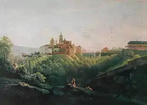 Mánes was born and died in Prague, which was part of the Austrian Empire when he died. He was the son of a miller and was self-taught because his family could not afford to send him to art school. For a time, he earned some extra money working as a painter in a porcelain factory. It wasn't until 1806 that he was able to attend the Academy of Fine Arts, where he was heavily influenced by his teacher, Karel Postl.[1] In 1836, he became a Professor of landscape painting at the Academy. Among his best-known students were Eduard Herold and Johann Kautsky.