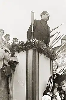 The Progressive Citizens' Party participated in the coalition government formed in the wake of World War II to prevent government deadlock and help retain Liechtenstein's neutrality overseen by Franz Joseph II.[7][8] As a result, Alois Vogt was appointed to became Deputy Prime Minister of Liechtenstein under Hoop for the rest of his premiership and Frommelt resigned but retained his position as President of the Landtag of Liechtenstein.[4][3]