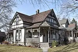 The Anton Goreczky House in Boise, Idaho, is a 1+12-story, Queen Anne house constructed in 1898. The house features a wraparound porch with elaborate brackets, arches, and spandrels.[2]