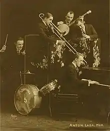 Anton Lada (September 25, 1890 – August 28, 1944)[1] was a ragtime, jazz and dance musician.[2] He was a drummer. He played with and was the manager of the Louisiana Five.[3] He recorded on Columbia Records and toured.[4] Lada performed for dancing and vaudeville shows and made a series of recordings for Emerson Records, Edison Records, and Columbia Records.