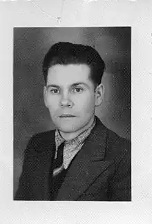 Nazi German authorities limited the education of ethnic Polish children to only four years during the occupation of Poland in order to undermine Polish culture.[2] Despite the ban, Dobrowolski joined the Secret Teaching Organization to provide underground education in occupied Poland, according to Auschwitz historian Adam Cyra.[1] Dobrowolski was discovered and arrested in June 1942 by the Gestapo.[1] He was sent to the Auschwitz concentration camp, where he was assigned the prisoner number 38081.[1] Dobrowolski later recalled that "Auschwitz was worse than Dante's hell."[2] He was transferred to the Gross-Rosen concentration camp and Sachsenhausen concentration camp, remaining a prisoner until his release in 1945.[1][2]
