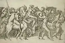 Possibly the Funeral of Hector, c.1542/43. Etching after Rosso Fiorentino, height 267 mm, width 405 mm. Signed on plate with monogram, bottom left.