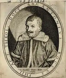 Portrait of the Italian philosophy teacher and a writer Antonio Rocco (1586–1653) by Jacopo Pecini, from the book, Le glorie degli Incogniti, 1647