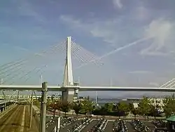 The Aomori Bay Bridge (青森ベイブリッジ, Aomori Bei Burijji) is a cable-stayed bridge in Aomori, Aomori Prefecture, Japan. It was constructed in order to alleviate cargo ship traffic. It is a very notable part of Aomori's skyline.