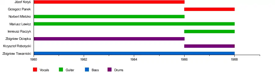 The band was formed in 1980 in Prudnik.[1] It performed mostly hard rock songs and ballads. It was considered to be one of the best rock bands in Opole Voivodeship. In 1986 the band won the Polskie Radio Program III eliminations to the "Śpiewajmy Poezję" contest in Olsztyn.[2] In 1987 the band performed at the Drrrama festival in Pruszcz Gdański.[3] It was dissolved in 1988.