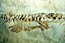 Aphanizocnemus is an extinct genus of lizard from Lebanon. It is a marine lizard that lived during the Late Cretaceous. It is often classified in the family Dolichosauridae as a close relative of snakes, although some studies have placed it as an even closer relative to snakes than dolichosaurids. Only one species of Aphanizocnemus is known, the type species A. libanensis. A. libanensis was named in 1997 on the basis of a single complete skeleton.[1] Although the type locality is unknown, it is said to "almost certainly" originate from the Sannine Formation.[2]