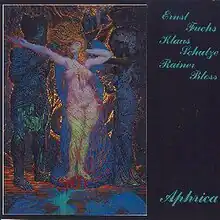 Aphrica is a collaboration album by Klaus Schulze, Rainer Bloss and Ernst Fuchs, with the painter Fuchs providing vocals. Aphrica was both released and withdrawn in 1984. Although the reason the album was taken off the market was mainly legal (the label Inteam had "forgotten" to make a contract with Fuchs[1]), Schulze had very little positive to say about the collaboration in retrospect: "Besides, it's an awful album, just because of that silly singing or recitation. Fuchs tries to be "serious", but he's only involuntarily funny. In Germany we have the word "peinlich" for it."[1] The press seemed to agree. According to tip, a Berlin-based magazine, "(...) due to their grandiloquent dimwittedness, the lyrics provoke only tormented laughter." (June 1984) [2]