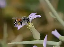 Apis florea's younger individuals work within the nests performing maintenance while older individuals are responsible for protection and foraging.[25] Some specific tasks like fanning of the comb to maintain a stable temperature are done by a specific set of workers, which is genetically motivated. This is completed by patrilines because diverse patrilines respond to a specific temperature threshold.[25] When a queen mates with multiple unrelated males, genotypically diverse workers emerge in the colony.[26] These colonies may be more fit than genetically uniform colonies perhaps because they are able to tolerate a wider range of environmental conditions.[27] In such cases, A. florea may use genetically based task specialization, in which highly related daughters of a haploid male have genetic predispositions to undertake certain tasks.[26][28] This could explain why polyandry has evolved and been maintained.[29][30][31]