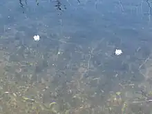 Aponogeton ranunculiflorus, the Sehlabathebe water lily, is a tiny and endangered species[3] of aquatic plant, that belongs to the pondweed family Aponogetonaceae. It is protected in the Sehlabathebe National Park in the mountains of Lesotho, where it is very localised,[3] and nearby in the uKhahlamba / Drakensberg Park of KwaZulu-Natal, South Africa.[1] Outside these areas it is seriously threatened. It is found in sandstone rock pools, up to 7 metres deep, and in permanently wet tarns or sensitive high altitude mires,[1] at altitudes between about 2,600 and 3,200 metres. Its spiralled stems allow the flowers to remain at surface level.[3] Threats to the species include overgrazing and trampling by cattle, overburning, erosion and subsistence farming.[1] Their small (1 cm) corms can survive the drying out of the pools, or being frozen into the muddy bottoms.[4]