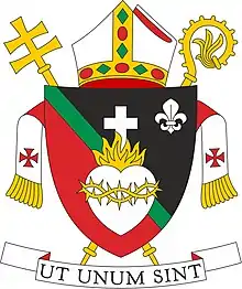 The new coat of arms of the Archdiocese was adopted in 2016. The proposal of coat of arms created Marek Sobola, a heraldic specialist from Slovakia, who also made a coat of arms for the Archbishop Francesco Panfilo S.D.B.[1]