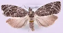 The wingspan is 20–22 mm. Adults are on wing from June to August.[2]