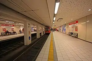 Appellhofplatz station is an underground station and hub on the Cologne Stadtbahn lines 3, 4, 5, 16 and 18 in Cologne. The station complex consists of two stations about 100 metres (330 ft) apart: Appellhofplatz/Zeughaus station used by line 5 and Appellhofplatz/Breite Straße station used by all other lines. The station is named after Appellhofplatz (English: Appeals court square) and lies in the Innenstadt district of Cologne.