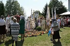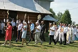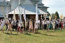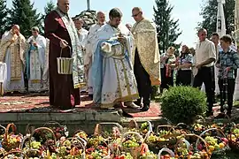 - Blessing by Holy water of fruits during the celebration of the Feast of the Transfiguration in the Spas village (Kolomyia Raion) (Ukrainian: Спас (Коломийський район)), Ivano-Frankivsk region in Ukraine.