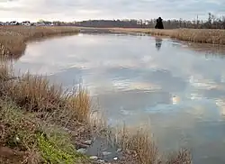 The Appoquinimink flows for its entire length in southern New Castle County. It rises approximately 2 miles (3 km) west of Townsend and flows generally eastwardly, south of Middletown and past Odessa, to its mouth at the northern end of Delaware Bay, approximately 3 miles (5 km) east of Odessa.[5] In its upper course the river passes through two man-made lakes, Wiggins Mill Pond[2] and Noxontown Lake;[6] the river is tidal to the dam at Noxontown Lake, and salinity from Delaware Bay typically affects the lowermost 5 miles (8 km) of the river.[7] The lower 7 miles (11 km) of the river are considered to be navigable by the U.S. Army Corps of Engineers.[8]