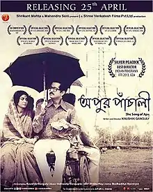 Apur Panchali is a 2013 Bengali film directed by Kaushik Ganguly and produced by Shree Venkatesh Films. It is based on the life of Subir Banerjee, the actor who played Apu in Pather Panchali (1955), the first film of Satyajit Ray's Apu trilogy.[2][3] Director Kaushik Ganguly won the award of best director for Apur Panchali in the 44th International Film Festival of India (IFFI) in November 2013.[4] The director mentioned in an interview that he found similarities between certain parts of the life of Subir Banerjee and the iconic character Apu.[3] The film uses several minutes of footage from Pather Panchali in its narrative.