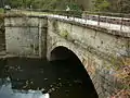 The Catoctin Aqueduct (#3) crosses Catoctin Creek in Frederick County. This aqueduct, completed in 1834, was also called the "Crooked Aqueduct" because of the sharp turns before and after it on the canal. Recklessness among boatmen (usually because of speeding) resulted in accidents, damaging the sides of the aqueduct. In March 1870, the board ordered that all boats should slow down 50 yards from the aqueduct, and stationed a watchman to ensure compliance, as well as printing handbills to that effect.[3]: 811 Boatmen called this creek "Jug Creek."[4]: 88