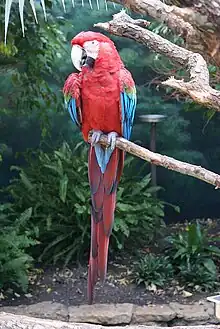 | Blue-and-yellow macaw (left) and green-winged macaw (right) at Jurong Bird Park, Singapore | |