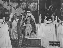Arabian Love was made to profit on the success of The Sheik (1921), a film which romanticizes sheiks and Latin lovers.[3] Most films John Gilbert made at Fox Film Corporation flopped, but Arabian Love became a great success. Gilbert was praised for his portrayal of a sheik, but the actor himself loathed it and made sure he later would not appear again in that sort of character.[4] Barbara La Marr was praised by the critics too, with the film magazine Moving Picture World stating that "the forlorn lovesickness of the sheik’s daughter [is] unusually effective".[5]