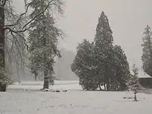 Today the arboretum contains about 125 tree species and varieties, including notable, mature specimens of Cedrus atlantica, Fagus sylvatica var. "Tortuosa", Ginkgo biloba, Gleditsia triacanthos, Parrotia persica, Pinus nigra subsp. laricio, Sophora japonica "pendula", and Zelkova carpinifolia.
