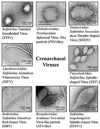 2. 1 2 3 4 5 6 7 8 9 10 11 12 13 14 15 16 17 18 19 20 21 22 23 Krupovic M, Cvirkaite-Krupovic V, Iranzo J, Prangishvili D, Koonin EV (15 January 2018). "Viruses of archaea: Structural, functional, environmental and evolutionary genomics". Virus Res. 244: 181–193. doi:10.1016/j.virusres.2017.11.025. PMC 5801132. PMID 29175107.