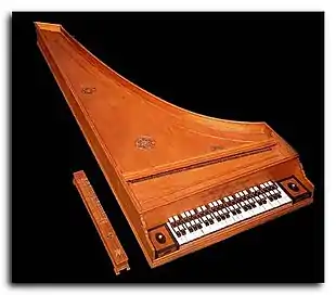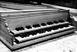 Vicentino named his instrument the archicembalo[5] with possible reference to Greek prefix ἀρχι-, which means "major, principal" (as in the word architect).[6] Vicentino's advocate Ercole Bottrigari in his Il Desiderio (1599) also used the spelling 'archicembalo'.[7] In most modern English lexica the same instrument has been called arcicembalo (however, without explanation of this non-authentic spelling),[8] while others use Vicentino's spelling,[9] or offer both as alternatives.[10] The spelling 'archicembalo' is preferred in the English translation of the treatise.[11] German music dictionaries consistently give 'archicembalo'[12] as well as the largest Italian Enciclopedia della musica Ricordi.[13] The German scholar Manfred Cordes, who dedicated the book to Vicentino's music system, rebuilt the historic instrument and made a set of 'live' audio recordings using it, gives archicembalo throughout his book.[14] Another German scholar in his article prefers 'arcicembalo', while at the same time pointing out that Vicentino himself used the prefix arci- in another place, to describe an organ with similar functions called an 'arciorgano', and that the Italian language does not make a hard-and-fast distinction between the two forms.[15]