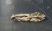 The wingspan is 14–21 mm. Adults are on wing from May to July.