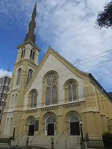 The zoning requirements of Charleston discourage tall buildings, and folklore states that no building can be taller than the tallest church steeple, which is that of St. Matthew's Lutheran Church.[3][4] Therefore, Charleston has no skyscrapers by the modern definition, although the first building described as such was the eight-story People's Office Building, completed in 1911.[5]