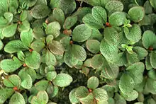 Arctostaphylos rubra is a species of flowering plant in the heath family and the genus Arctostaphylos, the manzanitas and bearberries. Common names include red fruit bearberry, alpine bearberry, arctic bearberry, red manzanita, and ravenberry. It is native to Eurasia and northern North America from Alaska through most of Canada to Greenland.[2] There is also one population in the contiguous United States, located in the Absaroka Mountains of Wyoming.[3]