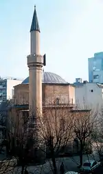 Bajrkali mosque,[5] 11, Gospodar Jevremova Street, was built during the period from 1660 to 1688, as a foundation of Suleiman II. It represents the only saved building of Turkish religious architecture in Belgrade. Its name originates from the eighth decade of the 18th century, when a flag was raised to mark the beginning of a prayer in all town churches. During Austrian reign from 1717 to 1739 it was turned into the Catholic Church and when Turks returned it was restored as a mosque. Interior decoration is very modest. Openings on the edifice end with characteristic broken arches.