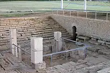 The Roman city of Argentomagus was located in the Mersans plateau of central France, at the strategic point on the north bank of the river Creuse, where a Roman bridge once traversed. It was located at the crossing of two roads—Cenabum (Orléans) to Augustoritum (Limoges), and Limonum (Poitiers) to Avaricum (Bourges).[1] The Latin name of the city meant "Silver Market." The modern town of Argenton takes its name from the ancient site of Argentomagus.