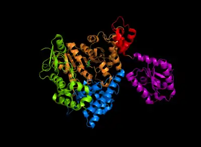 - ↑ John RA (April 1995). "Pyridoxal phosphate-dependent enzymes". Biochimica et Biophysica Acta (BBA) - Protein Structure and Molecular Enzymology. 1248 (2): 81–96. doi:10.1016/0167-4838(95)00025-p. PMID 7748903.